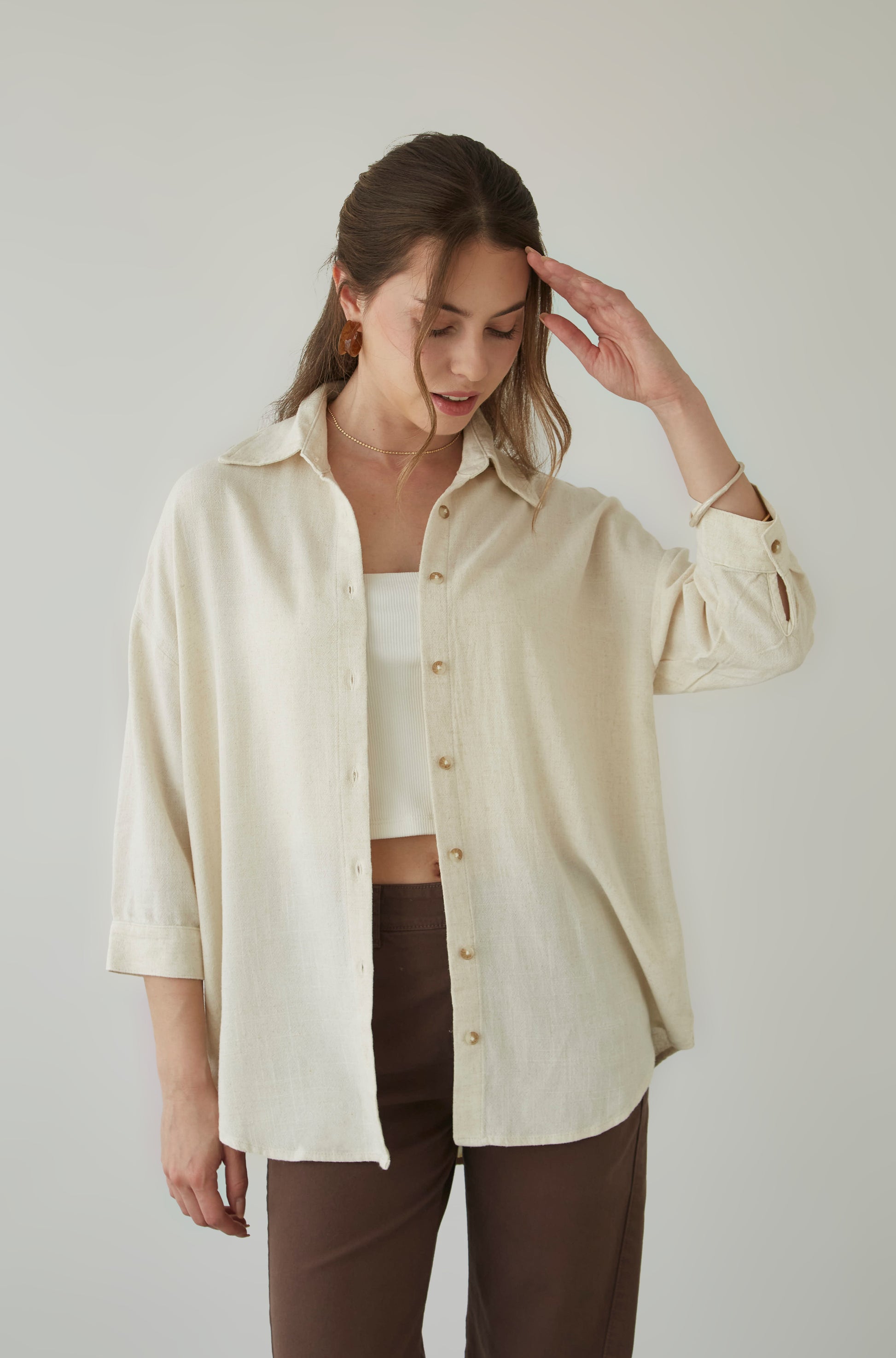 Blusa over size con botones manga 3/4.