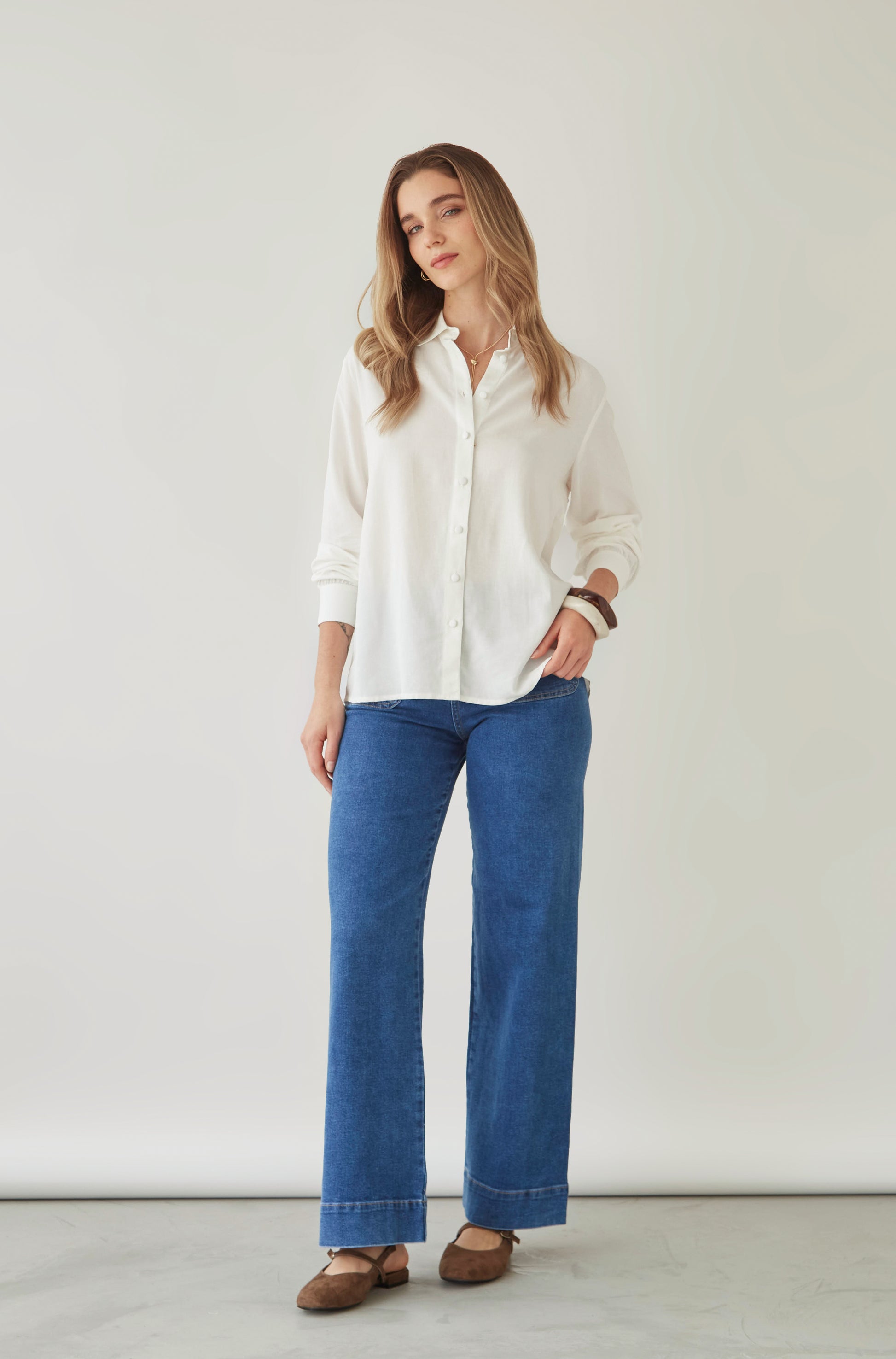 Blusa de cuello y solapa sin bolsillos con botones forrados.