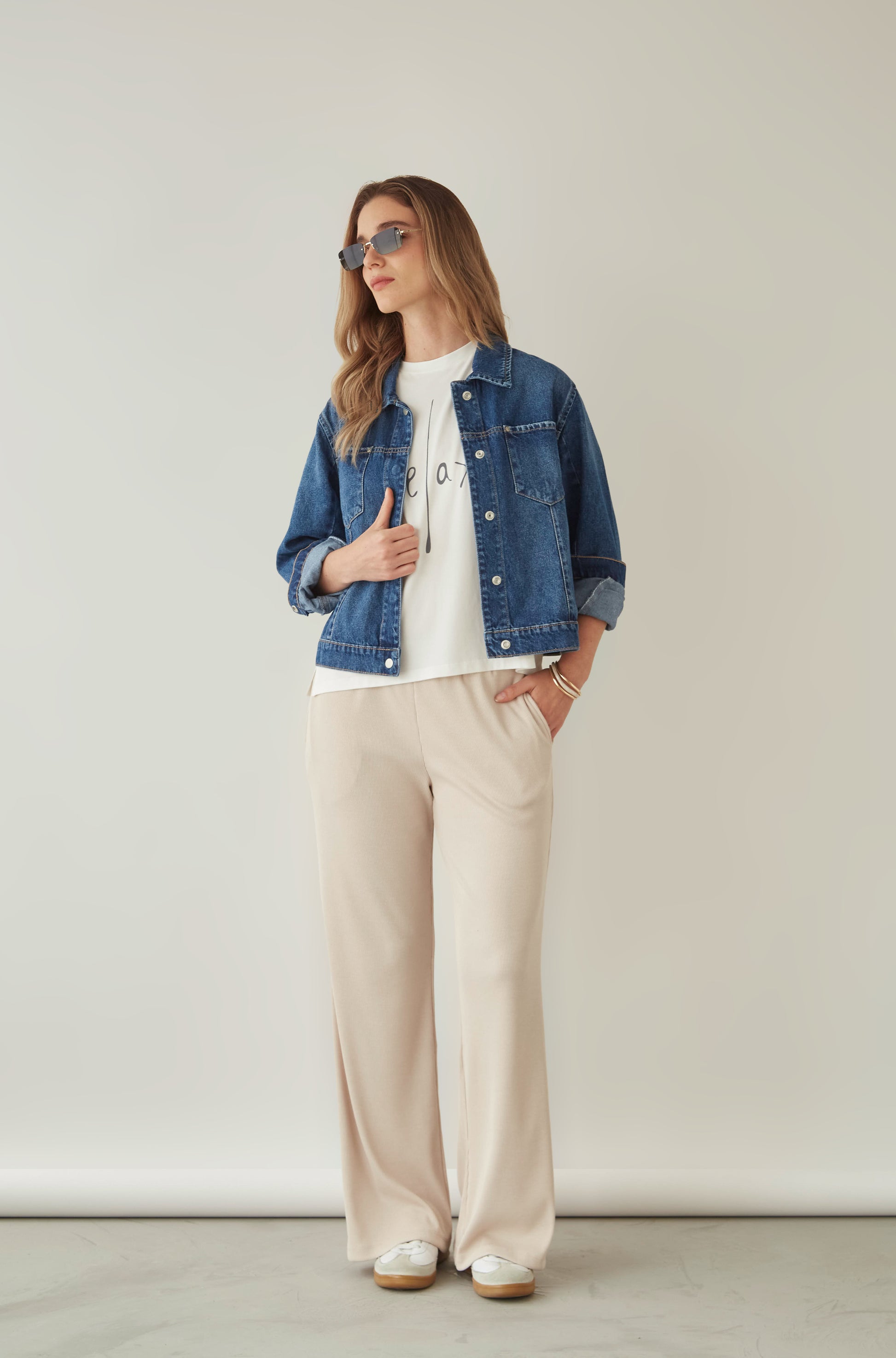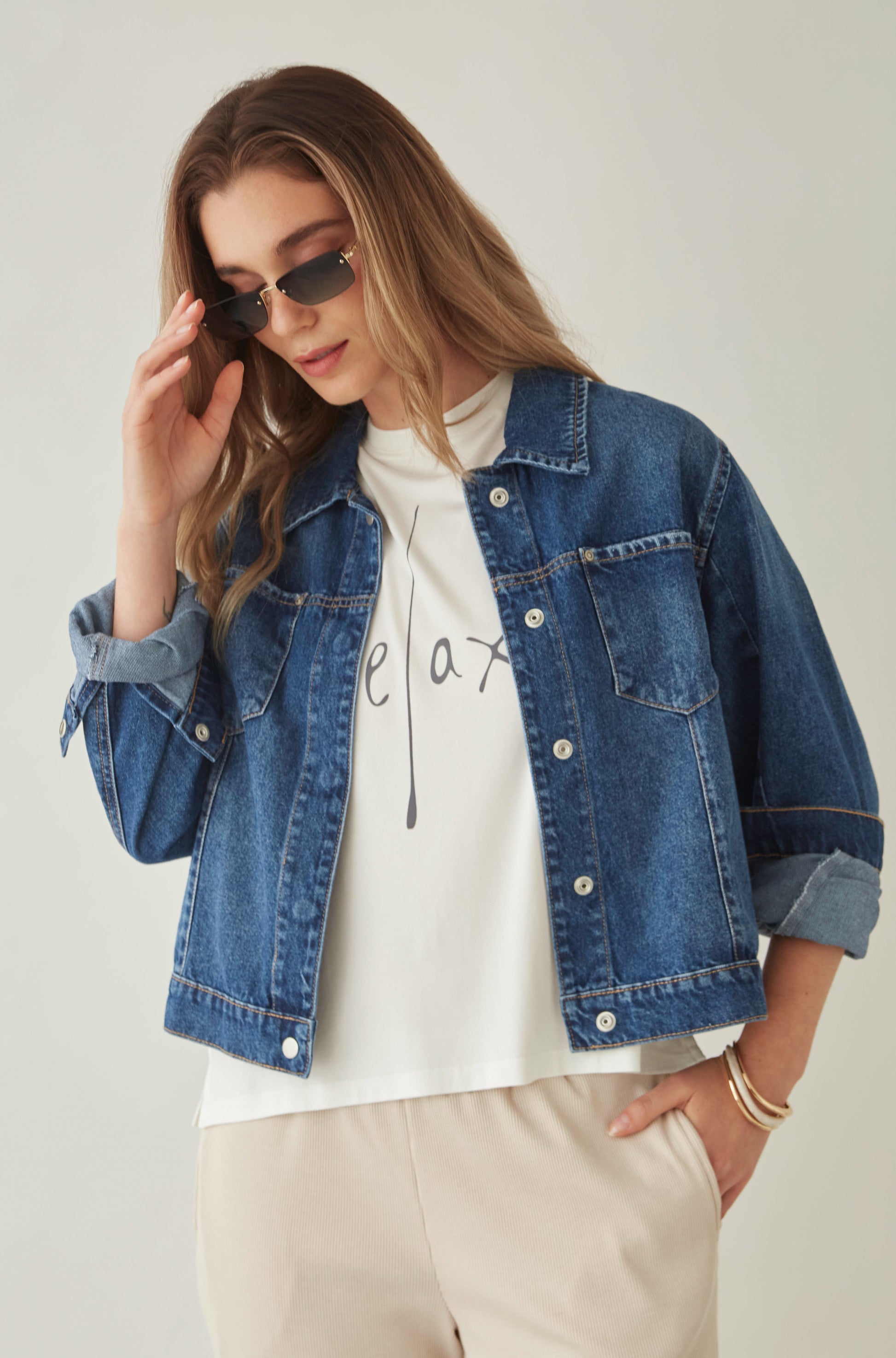 Casaca de cuello y solapa con bolsillos en el delantero.