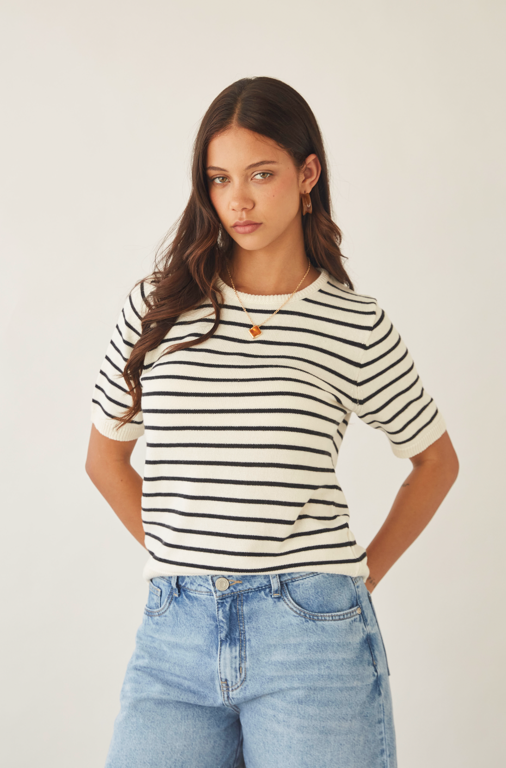 Chompa cuello redondo manga corta.