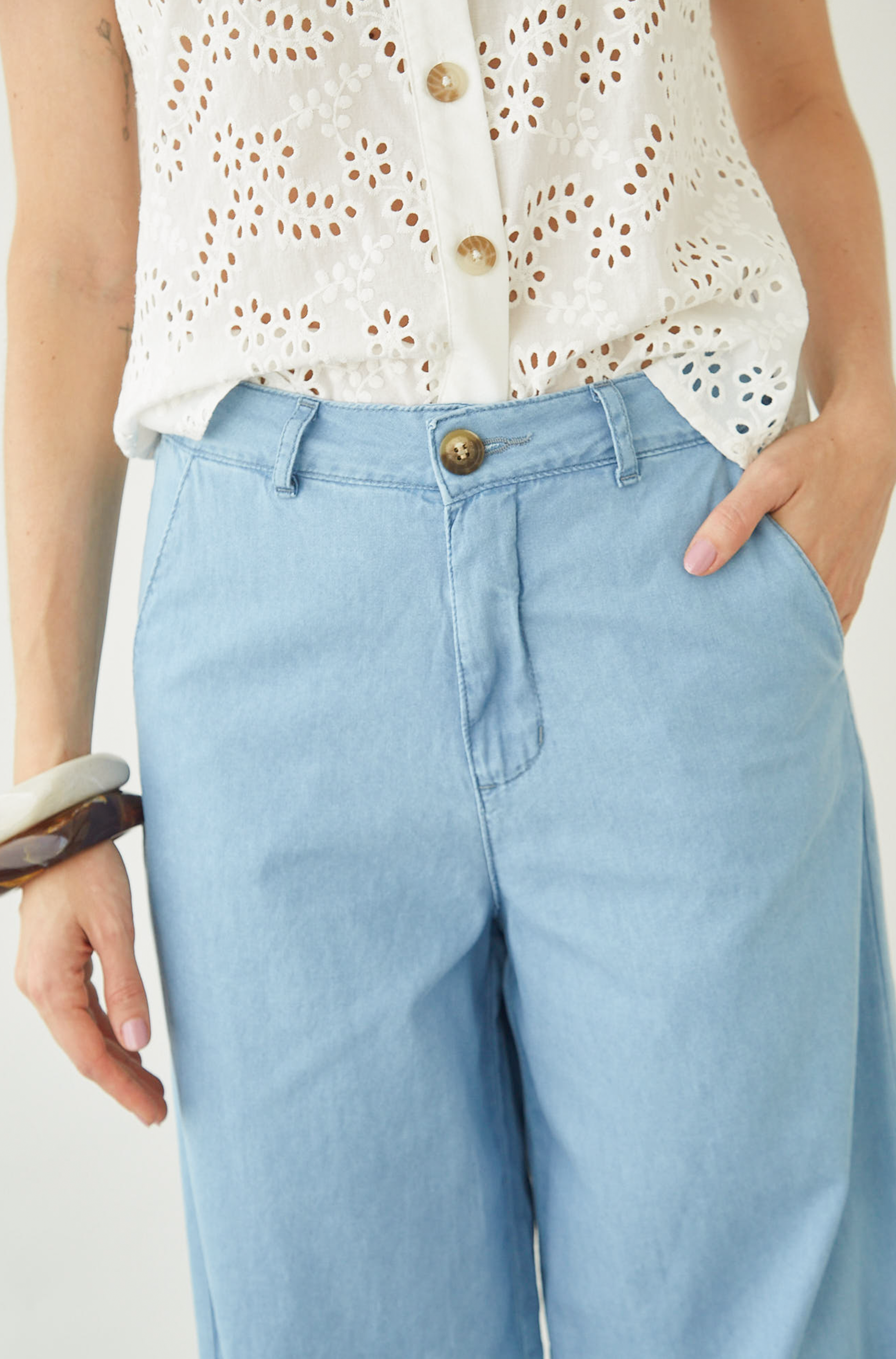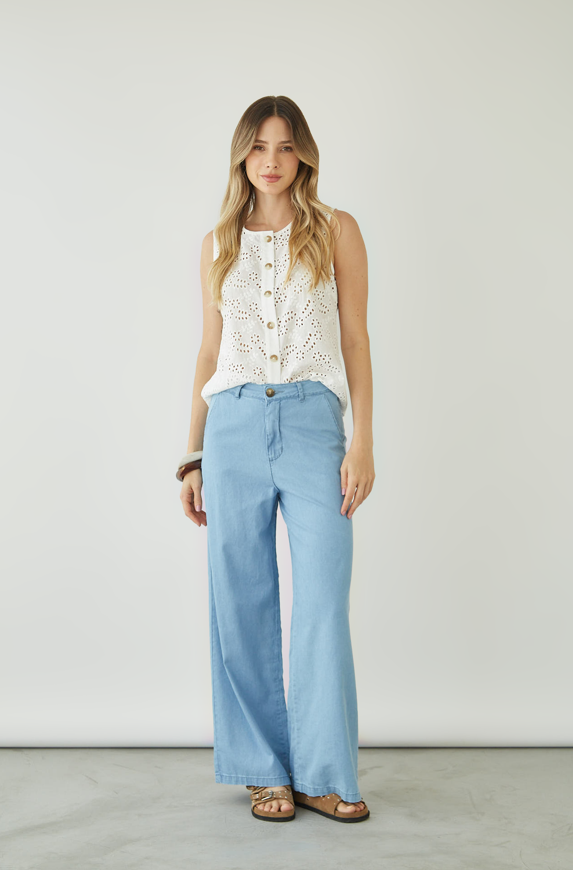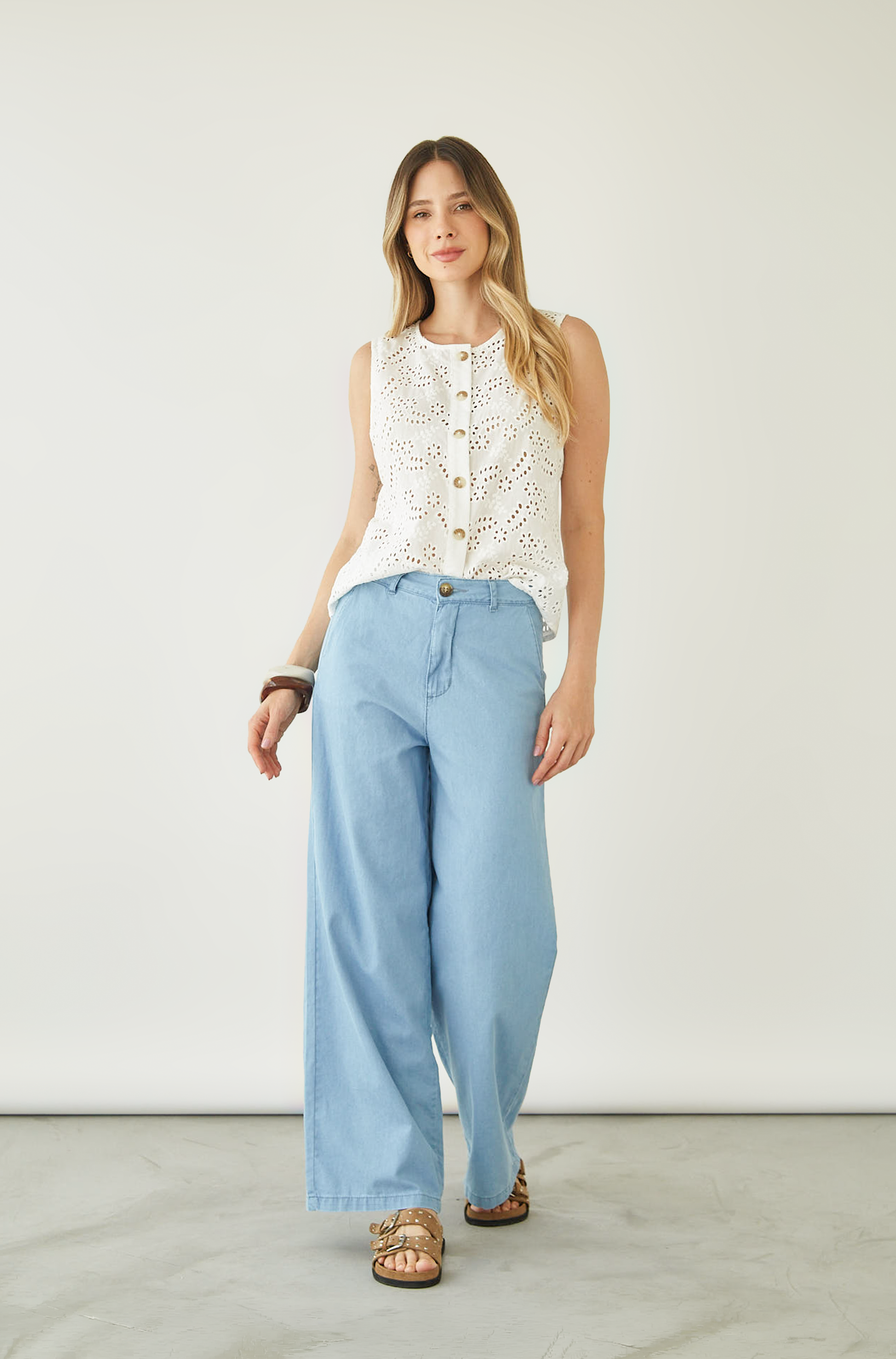 Jean wide leg con bolsillos laterales.