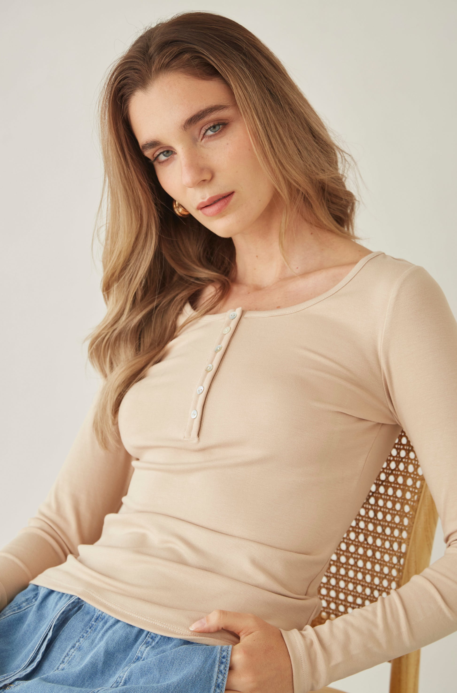 Polo cuello redondo con botones en la pechera.