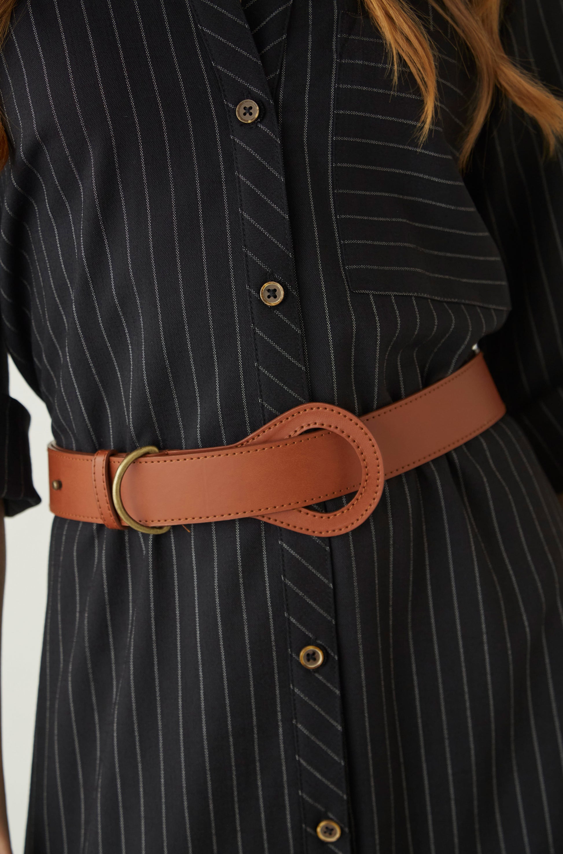 Vestido midi camisero de cuello y solapa con un bolsillo en delantero.